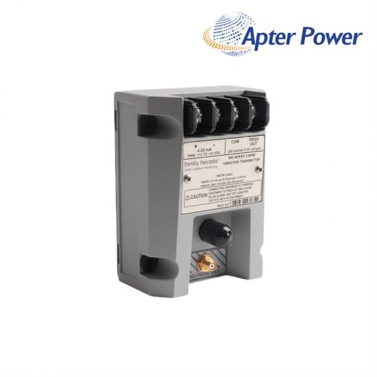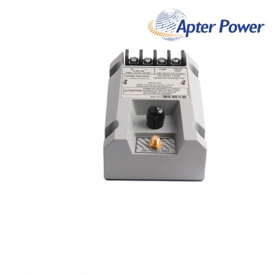 El transmisor es un dispositivo de dos cables alimentado por bucle que acepta entradas de nuestra sonda de proximidad 3300 NSv y su cable de extensión correspondiente.